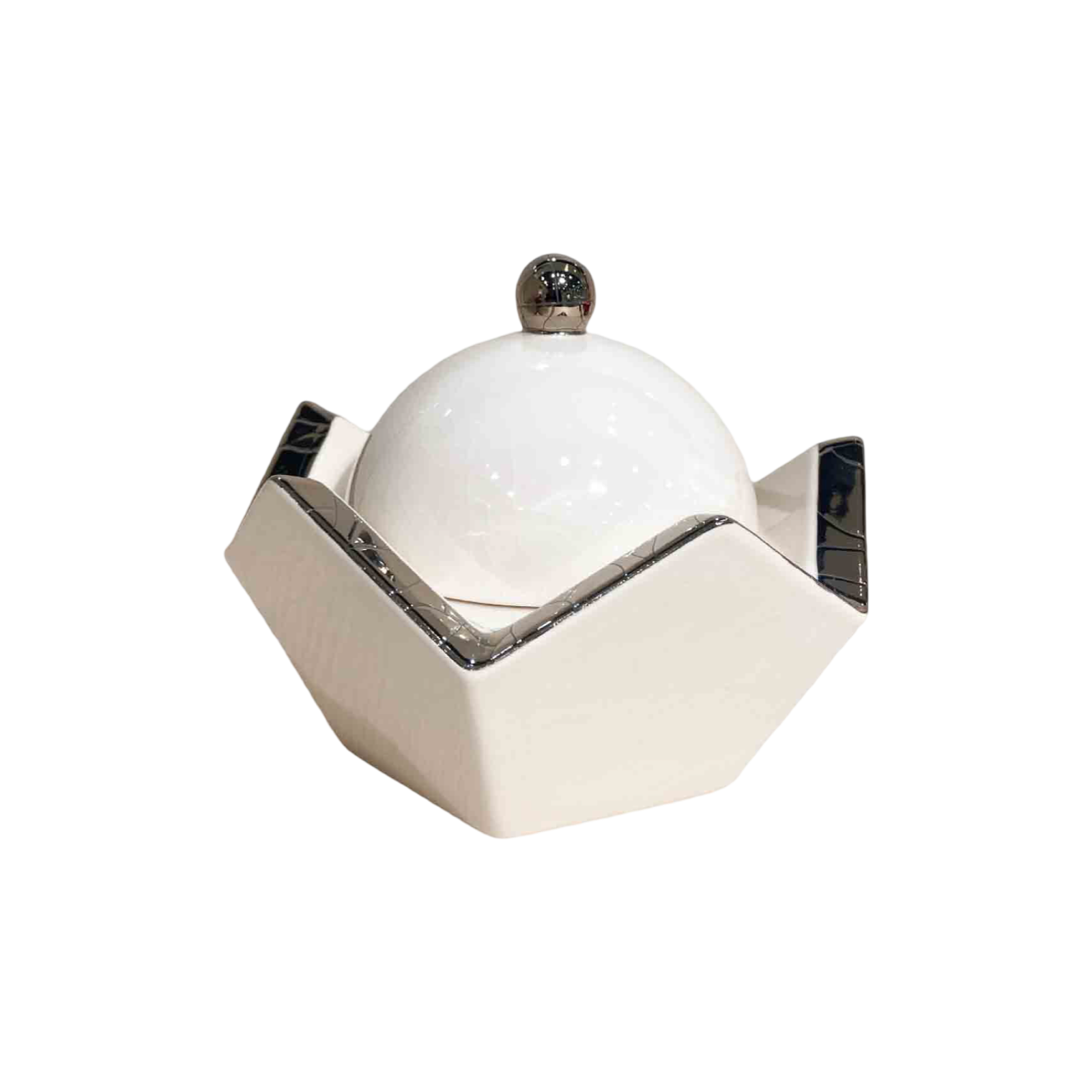 フランスの名窯「エモー・ドゥ・ロンウィ」のエナメル陶器。熟練した職人技が際立つ、美しいボックスです。特徴的な多角形のフォルムと、蓋のつまみが、モダンでスタイリッシュな雰囲気を醸し出しています。蓋を開けると、内側のエナメルが光沢を放ち、大切な小物を優しく保護します。ジュエリーやアクセサリー、または特別な思い出の品などを保管するのに最適です。その優雅なデザインは、ドレッサーやリビングのインテリアとしても美しく映え、空間に上品なアクセントを添えてくれます。贈り物としても喜ばれる逸品です。。