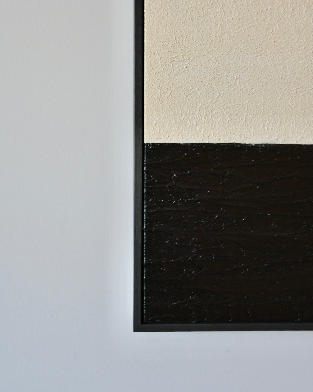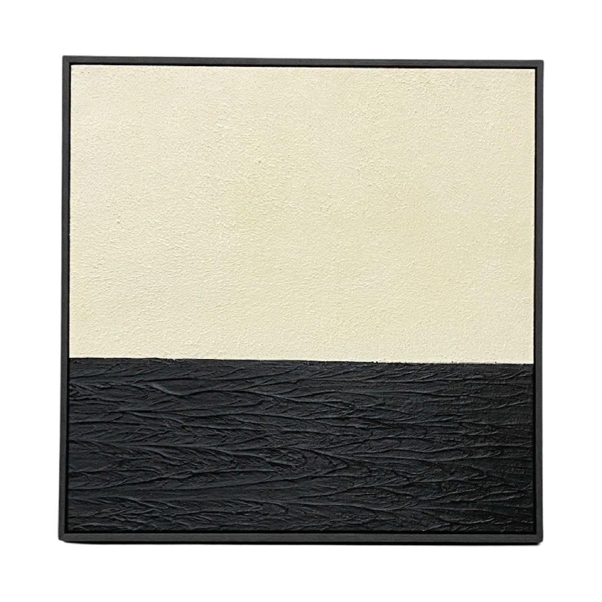 広大な水平線をシンプルかつ力強く表現した「Horizon」シリーズの抽象画です。画面を大胆に二分する水平線は、上部の広々とした色彩と下部の深みのある色彩とが対比し、見る者の心に静けさと広がりをもたらします。ミニマルな構成でありながら、色彩の濃淡や筆致のニュアンスが豊かな表情を生み出し、単調さとは無縁の奥深い魅力を湛えています。まるで、どこまでも続く空と大地、あるいは海と空の境界線を切り取ったかのような、普遍的で本質的な美しさが感じられます。お部屋に飾ることで、洗練されたモダンな空間を演出し、日々の喧騒から離れ、静かに瞑想するような時間を与えてくれるでしょう。リビング、オフィス、書斎など、様々な場所に調和し、空間にアクセントと落ち着きをもたらします。