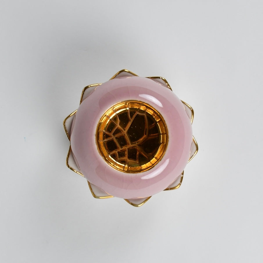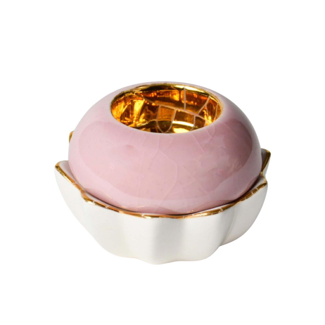 2020年秋冬に発表されたエモー・ドゥ・ロンウィの新作キャンドルホルダー「LOTUS(ロータス)」。その小ぶりでキュートな姿は、リビングでの団欒やダイニングでの食事シーンを優しく見守り、お洒落な雰囲気を演出します。蝋燭の明かりとエナメルの調和は唯一無二の美しさを生み出し、眺めているだけで心が安らぎます。パリ市内のレストランやバーのテーブルデコレーションにも起用されいるアイテムです。ホルダー部分の凹みは、市販で売られている直径38mm前後のティーライトキャンドルが収まるサイズになっています。