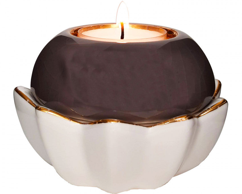2020年秋冬に発表されたエモー・ドゥ・ロンウィの新作キャンドルホルダー「LOTUS(ロータス)」。その小ぶりでキュートな姿は、リビングでの団欒やダイニングでの食事シーンを優しく見守り、お洒落な雰囲気を演出します。蝋燭の明かりとエナメルの調和は唯一無二の美しさを生み出し、眺めているだけで心が安らぎます。パリ市内のレストランやバーのテーブルデコレーションにも起用されいるアイテムです。ホルダー部分の凹みは、市販で売られている直径38mm前後のティーライトキャンドルが収まるサイズになっています。