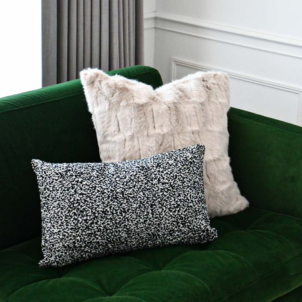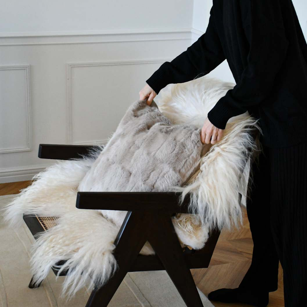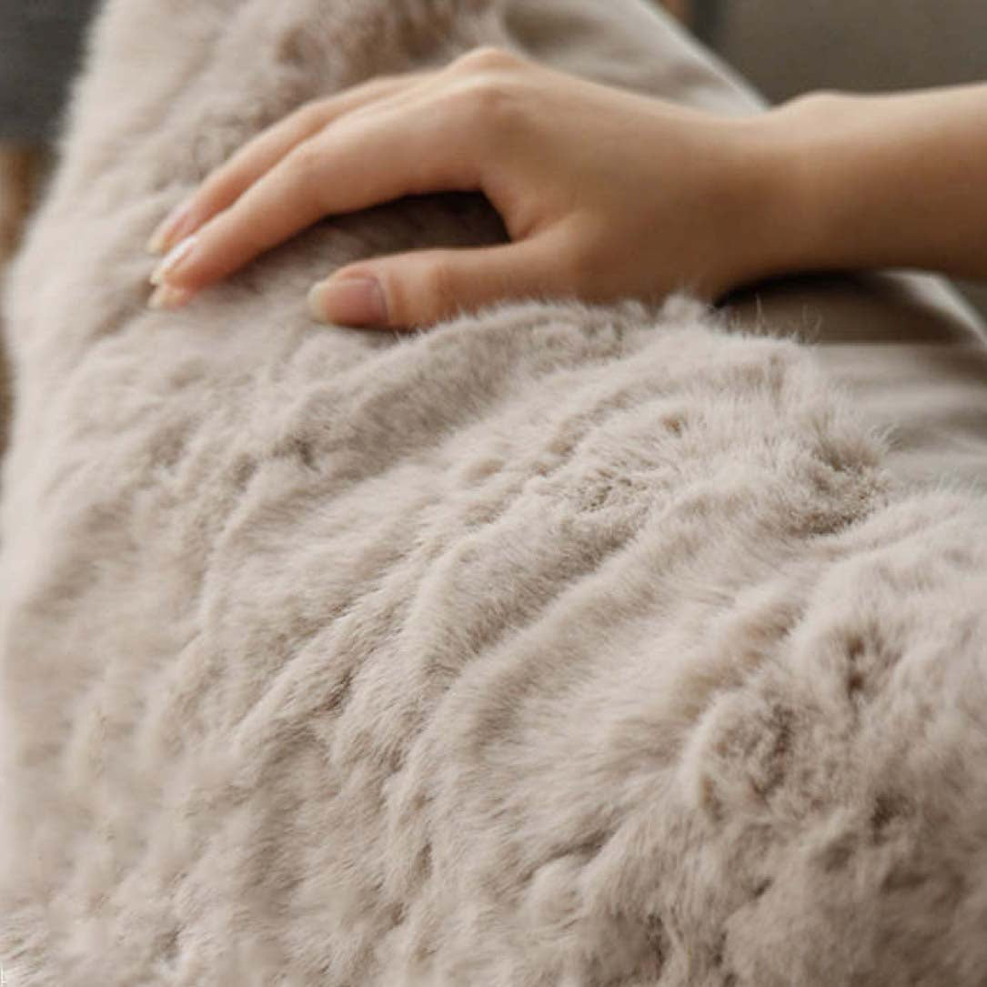 ふわふわとした肌触りの良いフェイクファー生地の50cm角のクッションカバーです。思わず手に取りたくなってしまうフラッフィーな感触とボリュームが、くつろぎの空間にラグジュアリーなアクセントをもたらします。落ち着いたグレージュカラーのフェイクファーが高級感を演出し、インテリア空間にマッチします。通常よりも一回り大きいサイズの50cm角のクッションは、ふっくらとしていて高級感が漂います。TYSENNで扱うクッションカバーは本来の用途としてだけでなく、取り入れるだけで日常が華やかになるデザインをセレクトしています。