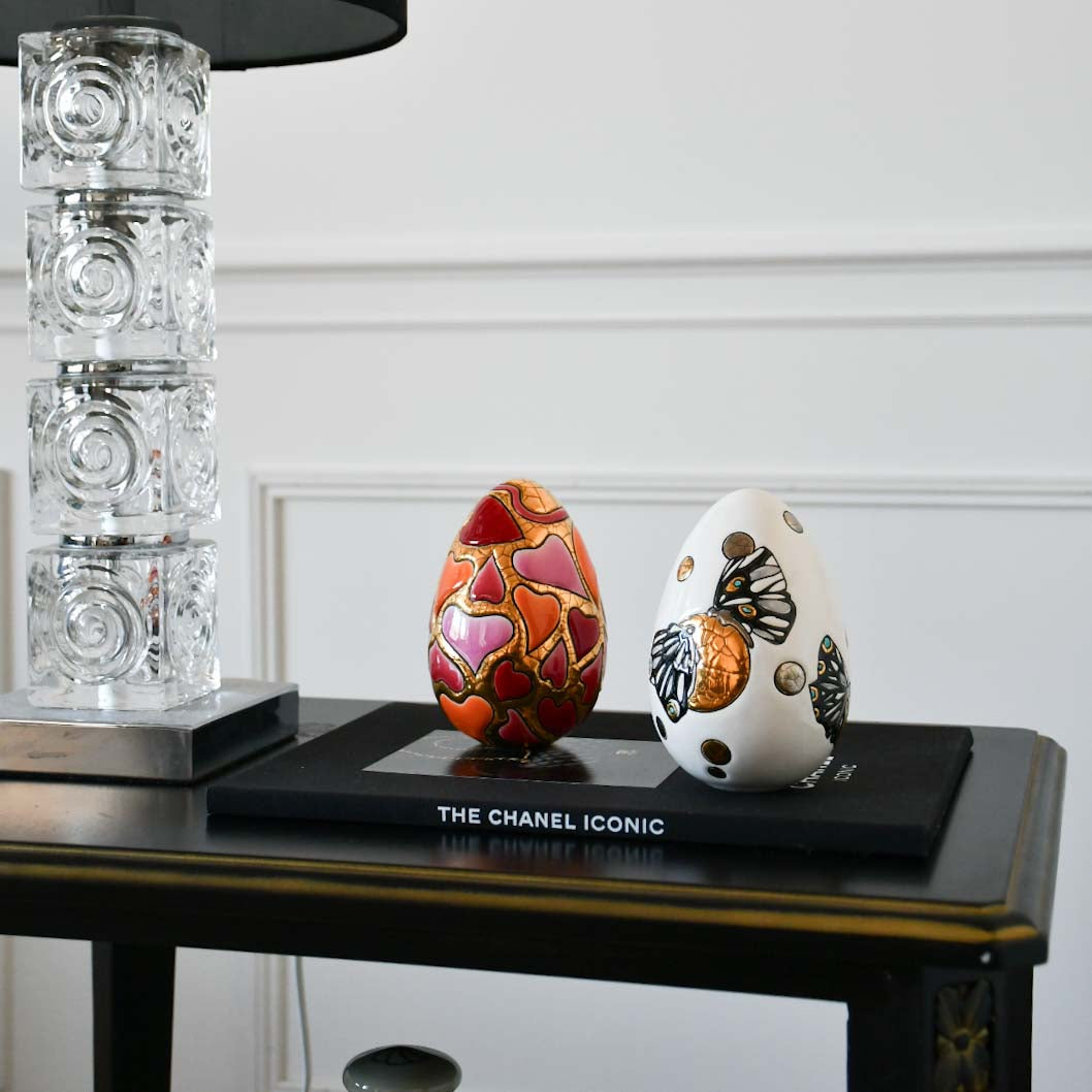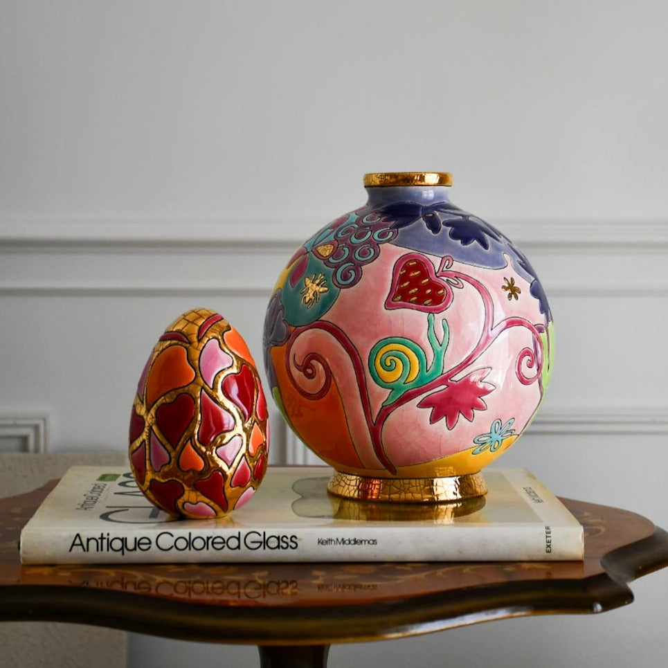220年受け継がれるエモー・ドゥ・ロンウィ特有のエナメル装飾技法によって生み出されたセラミックアート。緻密な柄と発色の良さは、他の陶器メーカーとは一味違うインパクトをインテリアに与えてくれます。凹凸のある表面からは、ハンドメイドならではの温かみが感じられ、美術品と共に暮らす豊かさを教えてくれます。