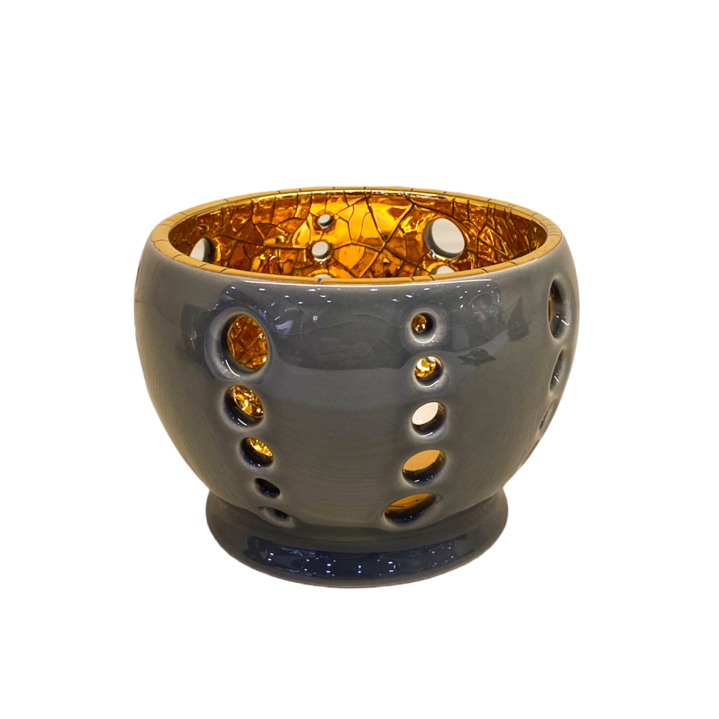 フランスの名窯「エモー・ドゥ・ロンウィ」のエナメル陶器。フランスの熟練職人の手仕事が光る、美しいキャンドルポットです。陶器に施された繊細なカットワークから、内側の鮮やかなゴールドが覗き、上品な輝きを放ちます。光と影のコントラストが美しく、キャンドルの灯りを優しく包み込み、幻想的な雰囲気を演出します。シンプルながらも洗練されたデザインは、どんなインテリアにも調和し、お部屋のアクセントとして存在感を放ちます。特別な日の演出にはもちろん、日常にさりげない贅沢を添えるアイテムとして、長くご愛用いただけます。